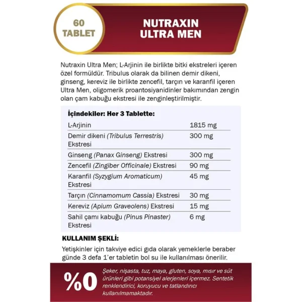 أقراص Nutraxin Ultra للرجال (60 قرصًا): طاقة، قوة، وأداء لا مثيل له!